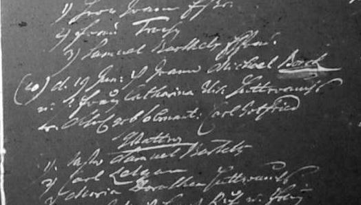 (20) d. 19. Jun: ..... ...... Michael Borck u. Frau Catharina .... Littermannss ............ geb / benannt Carl Gotfried Gevattern nicht wichtig